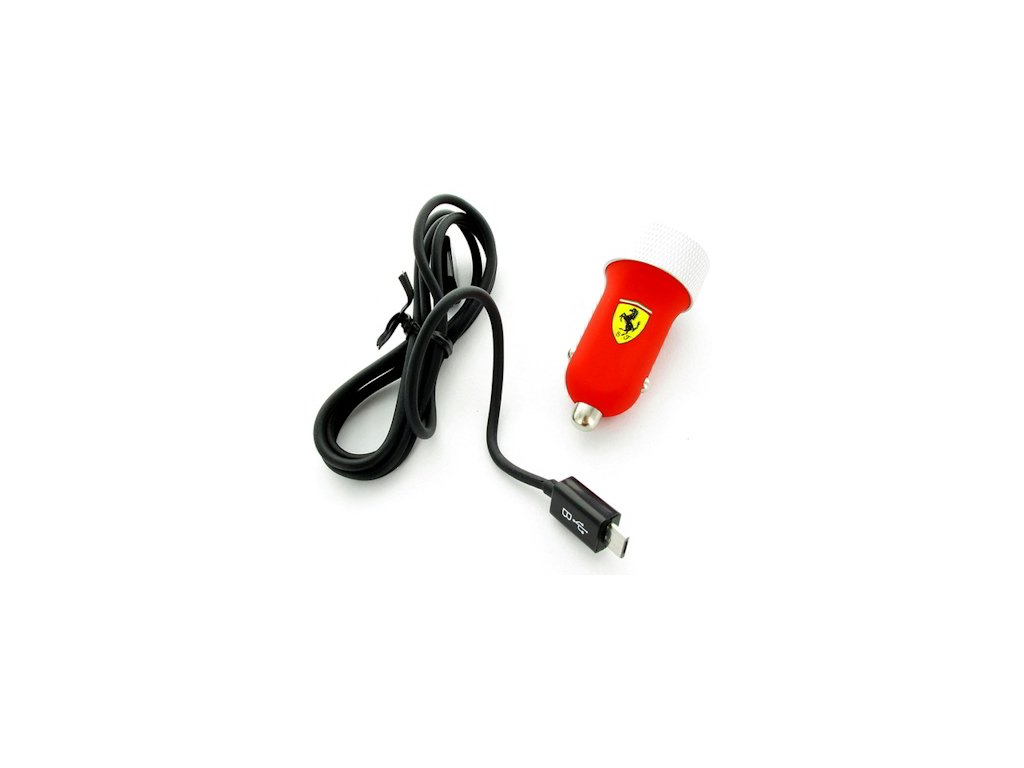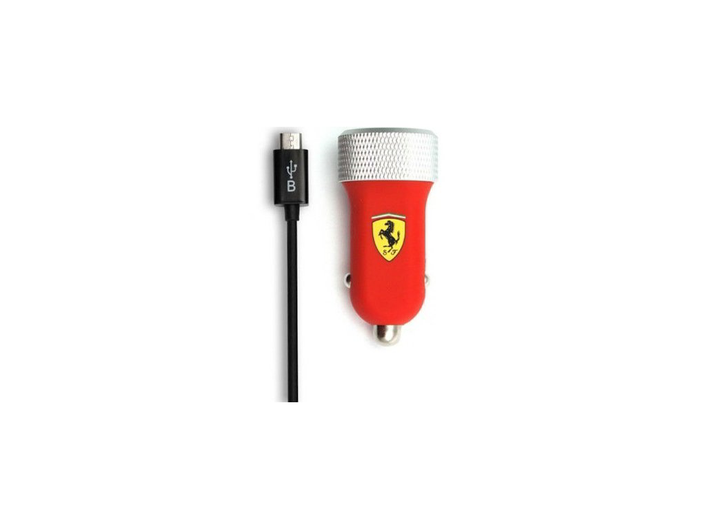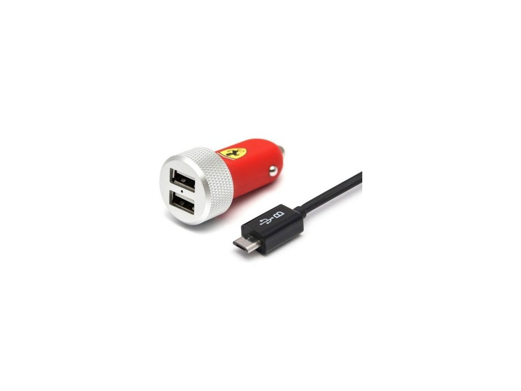 Nabíjačka do auta Ferrari Scuderia Slim Dual Micro USB 2100 mAh + dátový kábel - červená
