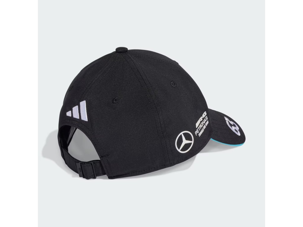 Oficiálna čiapka Mercedes AMG Petronas F1 2025 venovaná Georgeovi Russellovi (#63) v čiernej farbe. Pohodlný strih, nastaviteľný zadný pásik a ikonický dizajn tímu Formule 1 z nej robia dokonalý doplnok pre fanúšikov značky Mercedes a motoristického športu - vhodný na preteky aj na každodenné nosenie.