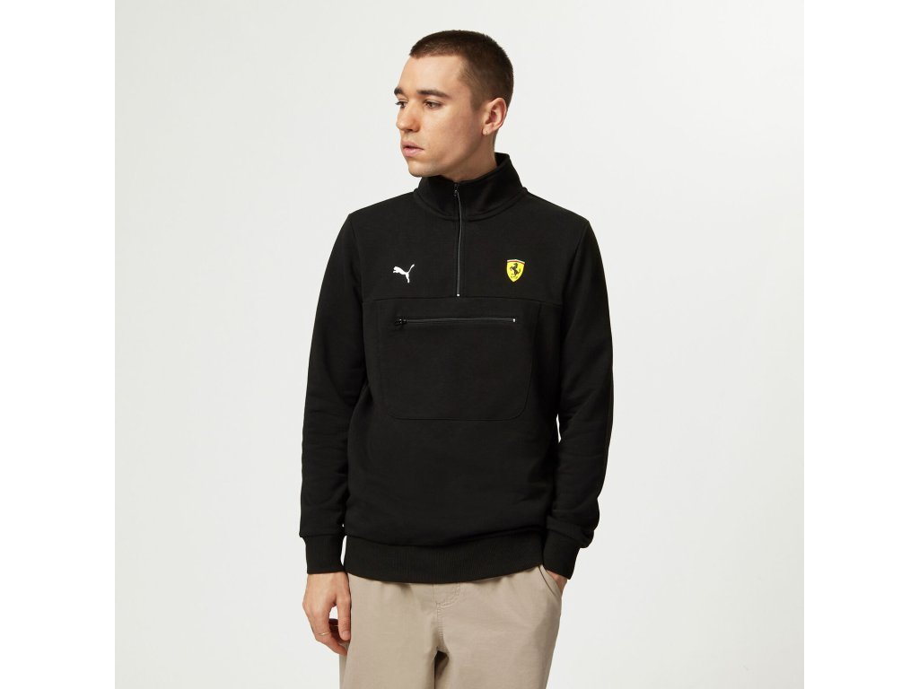 Oficiálna mikina PUMA Scuderia Ferrari Quarter Zip s vreckom na zips a červenými panelmi inšpirovanými dizajnom pretekárskeho auta Scuderia Ferrari F1.Klasický strih mikiny umožňuje voľnosť pohybu, takže je ideálnou voľbou pre ľudí, ktorí ocenia pohodlný a univerzálny strih.