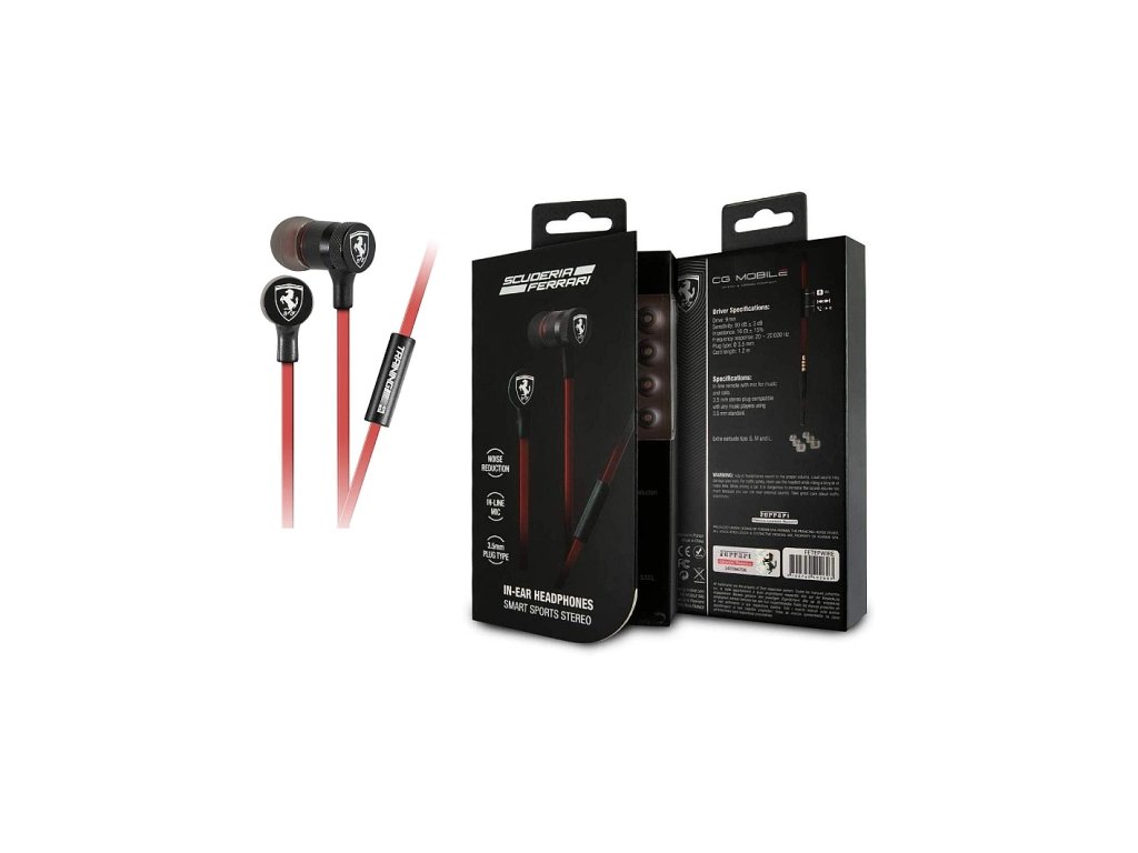 Slúchadlá Scuderia Ferrari. Emblém Scuderia Ferrari na slúchadlách.