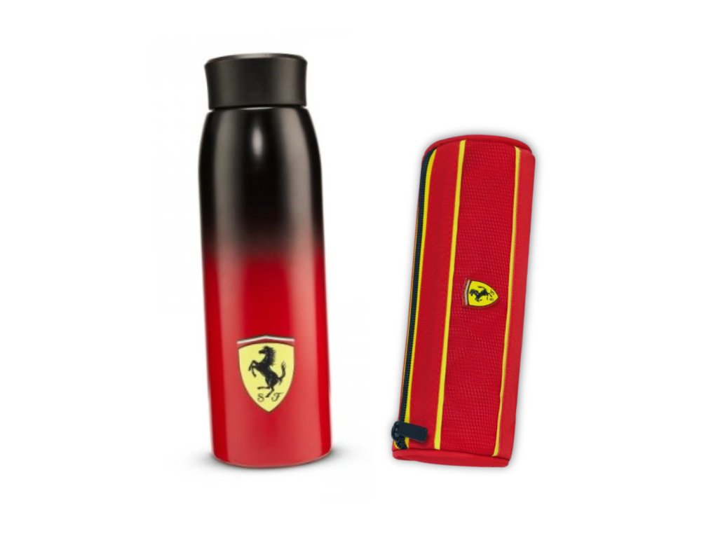 Školský set Ferrari Classic je ideálny na každodenné použitie do školy a na cesty. Štýlová kombinácia červeného peračníka s ikonickým logom Scuderia a praktickej termo fľaše udrží nápoje studené a teplé po celý deň. Ideálna voľba pre malých aj veľkých fanúšikov Formuly 1.