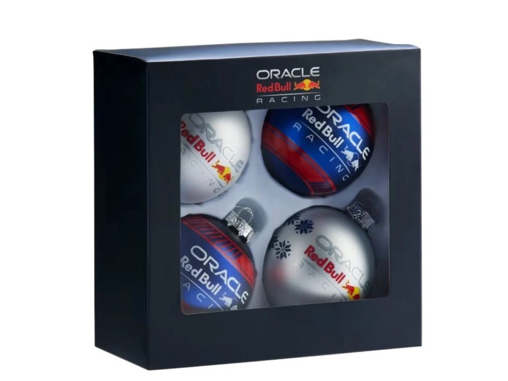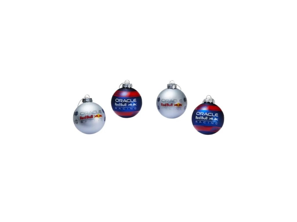 Toto balenie obsahuje 4 veľké ozdoby Oracle Red Bull Racing na vianočný stromček. Lesklé ozdoby Oracle Red Bull Racing s logom a vianočným motívom.